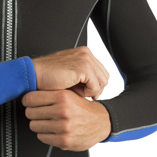 Das 2 mm starke Neopren ist sehr dehnbar und passt sich den meisten Körperformen an. Das Fehlen von Nähten unter den Armen verhindert das Eindringen von Wasser in diesen Bereich.