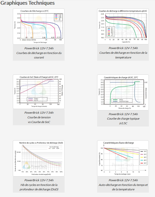 Da eine PowerBrick+-Batterie zu 100% ihrer Kapazität entladen werden kann, kann eine AGM-Bleibatterie durch PowerBrick+ mit einer Kapazität ersetzt werden, die 2x niedriger ist als die der Bleibatterie (z.B. ersetzt eine PowerBrick+ 50Ah eine 100Ah AGM-Batterie).