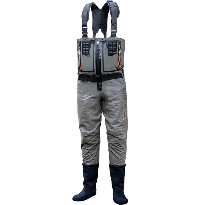 Die wathosen 800 ZIP ist eine 3- und 4-lagige High-Tech-Weste mit einem Wabengewebe, verschweißten und verstärkten Nähten. Eine Membran mit feuchtigkeitsableitenden Eigenschaften erhöht den Komfort.
